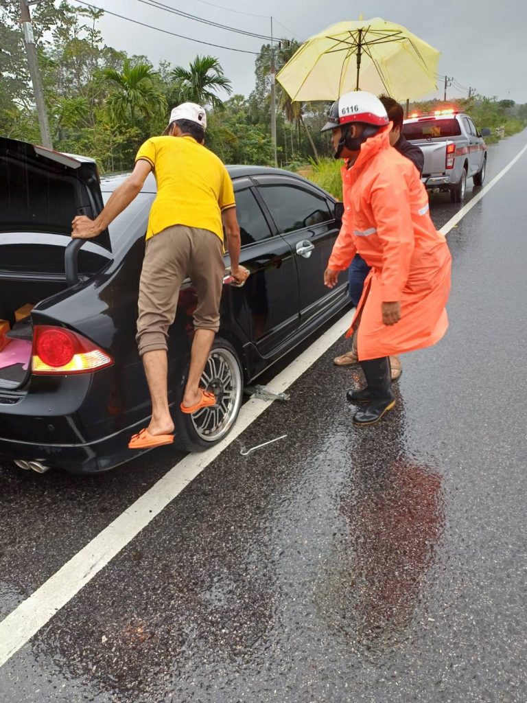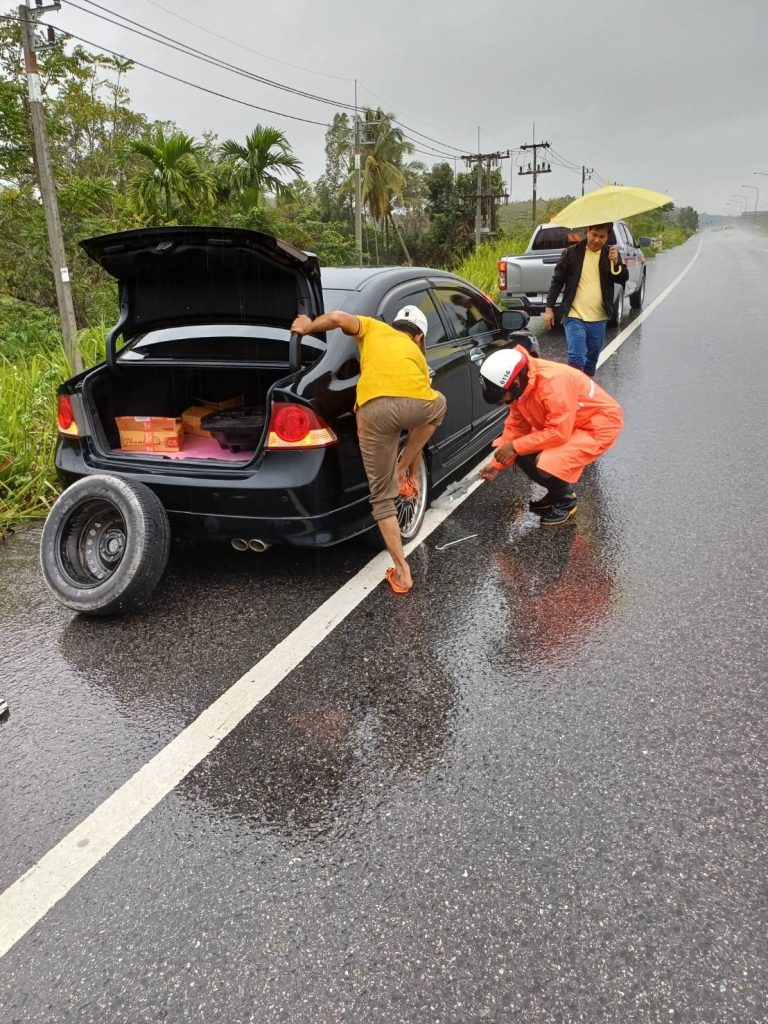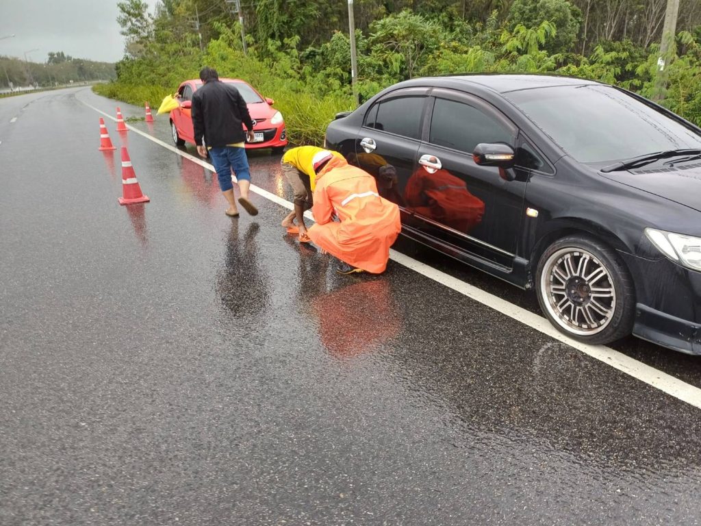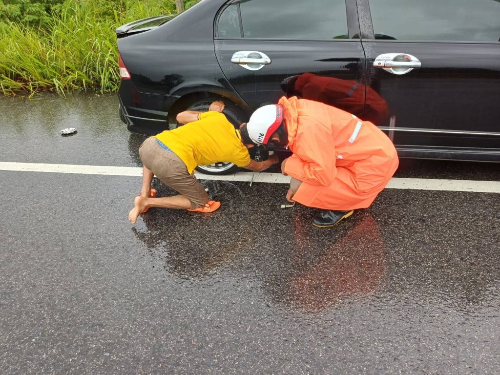 สั่งการให้ ร.ต.อ.ประเสริฐ ล่องสุวรรณ รอง สวป.ฯ/ ร้อยเวร 60 พร้อมด้วย ชป.จราจร ว.4 อำนวยความสะดวกและให้การช่วยเหลือแประชาชน ประสบเหตุรถตกหลุมทำให้ล้อแม็คแตก ไม่สามารถเดินทางต่อได้