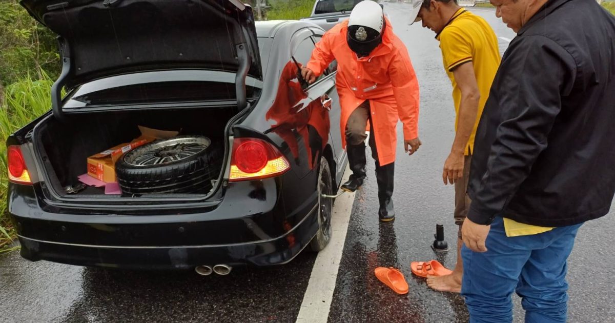 สั่งการให้ ร.ต.อ.ประเสริฐ ล่องสุวรรณ รอง สวป.ฯ/ ร้อยเวร 60 พร้อมด้วย ชป.จราจร ว.4 อำนวยความสะดวกและให้การช่วยเหลือแประชาชน ประสบเหตุรถตกหลุมทำให้ล้อแม็คแตก ไม่สามารถเดินทางต่อได้