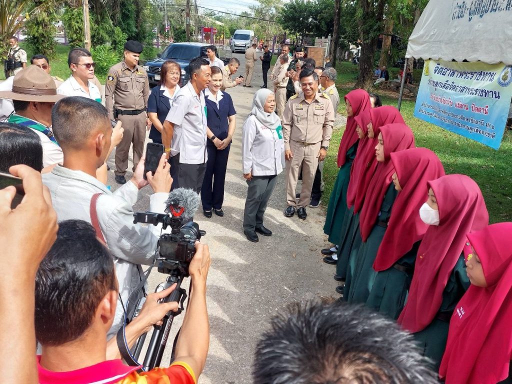 วันที่ 21 เวลา 10.00 น. ธันวาคม 2566 พ.ต.อ.สมยศ สมบัติมาก ผกก.สภ.แม่ลาน ร่วมต้อนรับคณะหน่วยบริการจังหวัดเคลื่อนที่ จ.ปัตตานี โดยมี นางพาตีเมาะ สะดียามู ผู้ว่าราชการจังหวัดปัตตานี เป็นประธานกิจกรรมดำเนินงานในครั้งนี้ พร้อมทั้งจัดเจ้าหน้าที่ตำรวจ ชุดมวลชนสัมพันธ์ เข้าร่วมตัดผมให้กับนักเรียน ร่วมกับหน่วยงานราชการและภาคประชาชน ณ โรงเรียนแม่ลานวิทยา อ.แม่ลาน จ.ปัตตานี
