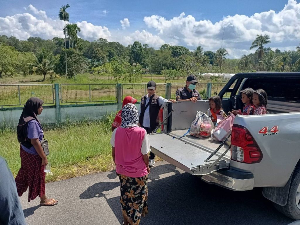 – ว.4 ให้ความช่วยเหลือประชาชน บริเวณถนนภายในหมู่บ้าน  พื้นที่ ต.ม่วงเตี้ย อ.แม่ลาน จ.ปัตตานี
