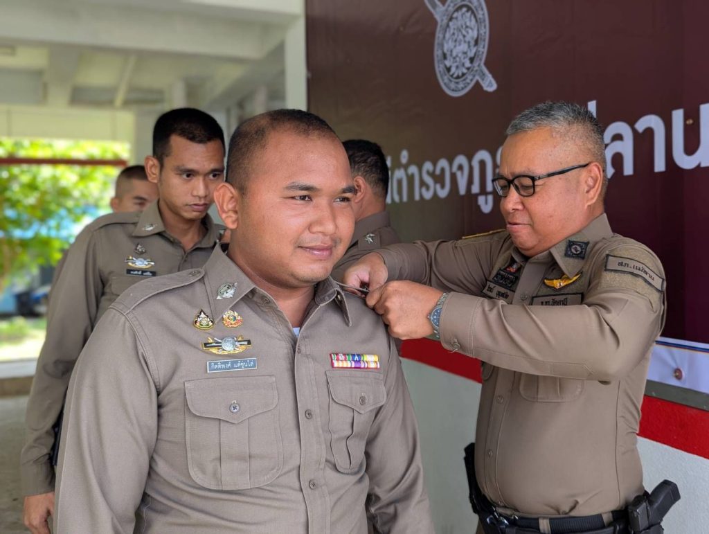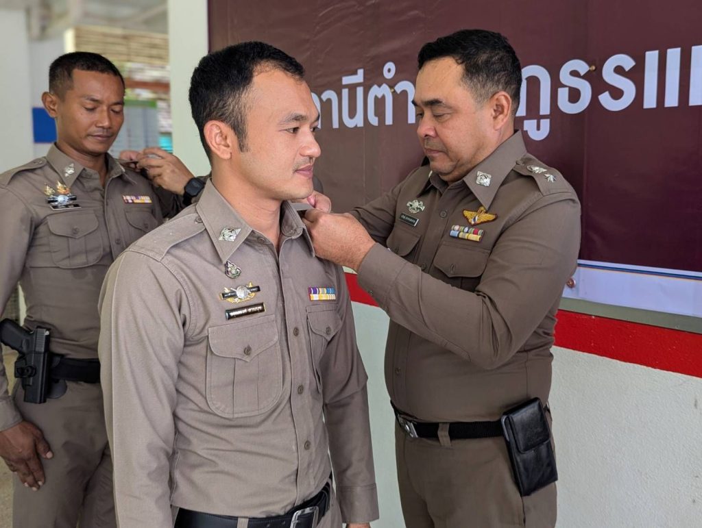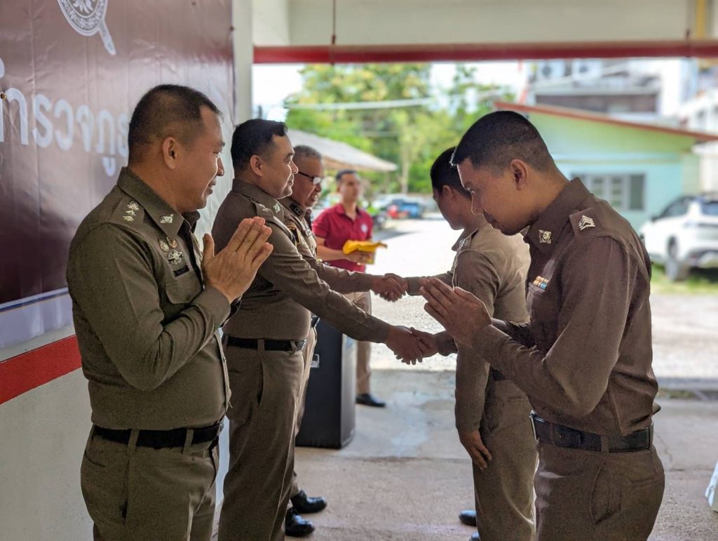 ประดับยศให้แก่ข้าราชการตำรวจที่เลื่อนยศ มอบเงินสนับสนุนแก่ชุดปฏิบัติการ เพื่อขวัญและกำลังใจที่ดี ตลอดจน ร่วมรับประทานอาหารเที่ยงขนมจีน สนับสนุนโดย ผกก.