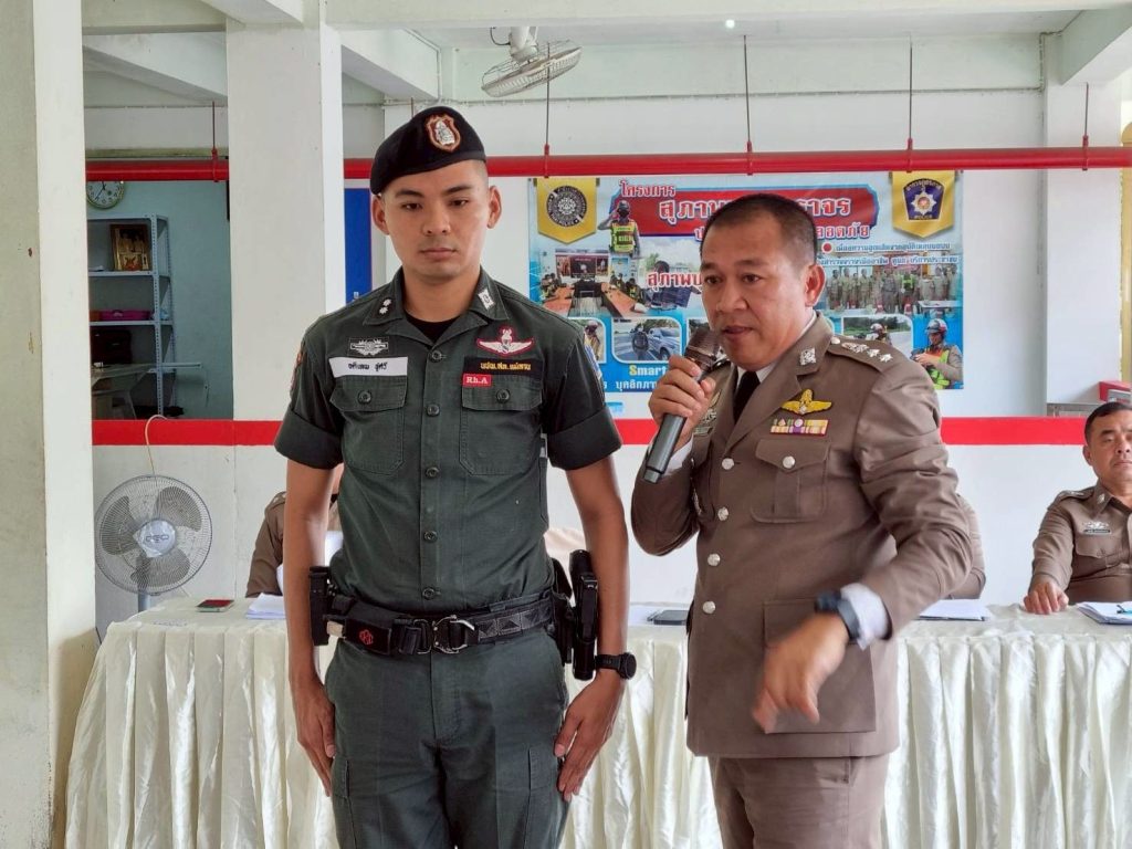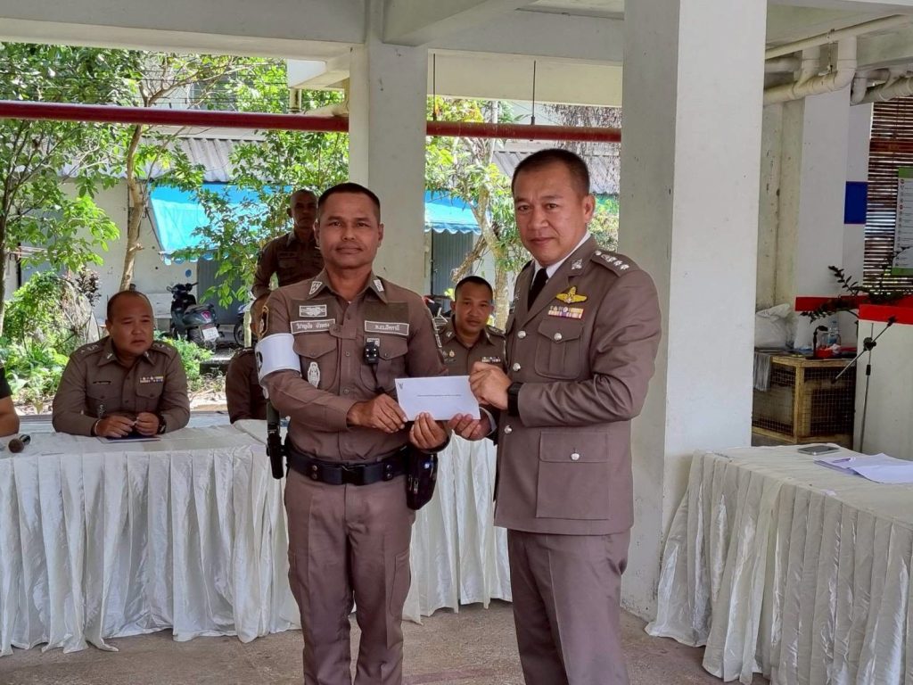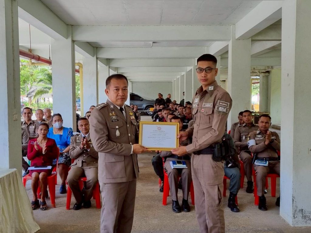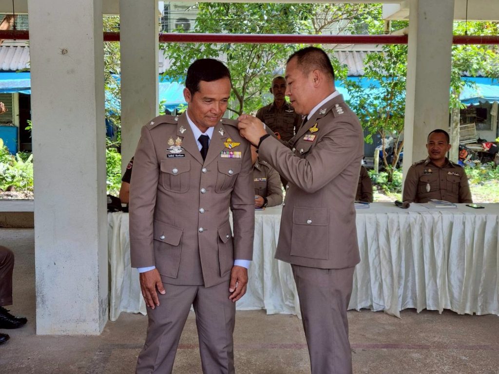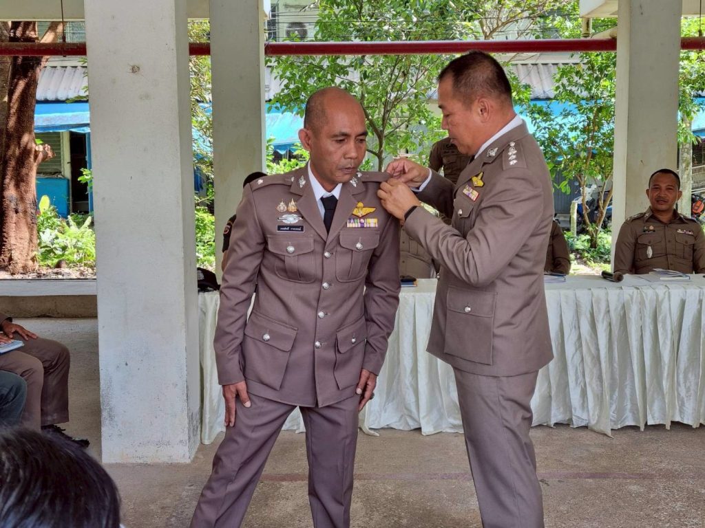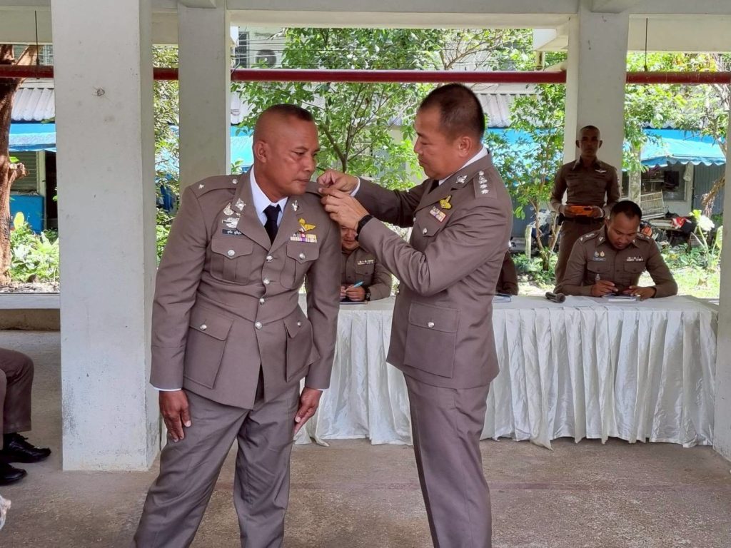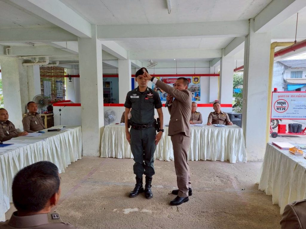 พร้อมทั้งให้เกียรติประดับยศ ร.ต.ต. แก่ข้าราชการใต้บังคับบัญชา มอบเงินสนับสนุนแก่ชุดปฏิบัติการเพื่อขวัญและกำลังใจที่ดี ตลอดจน ร่วมรับประทานอาหารเที่ยง สนับสนุนโดย ผกก.