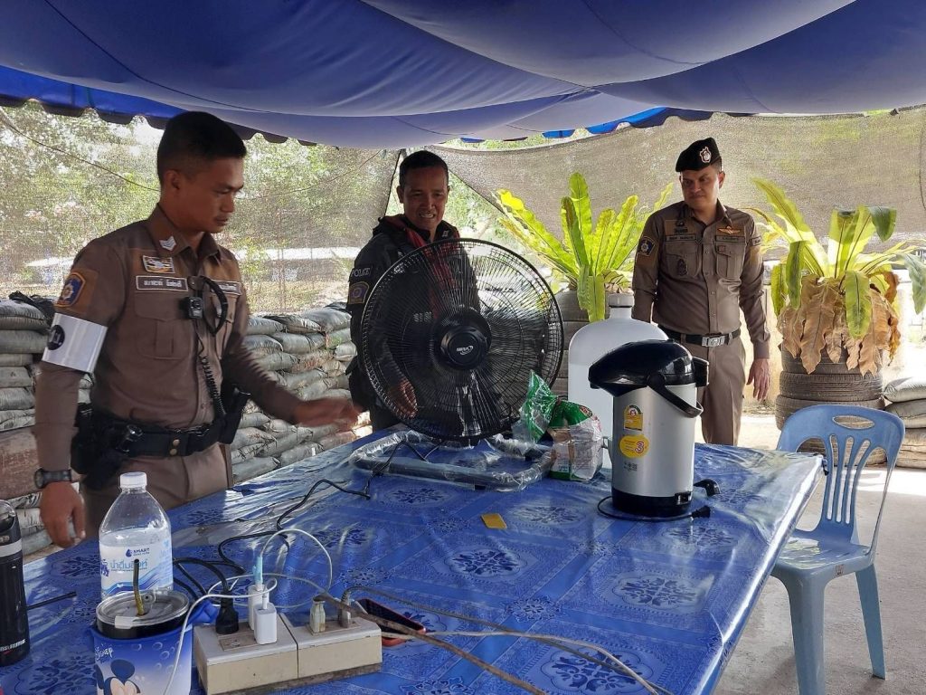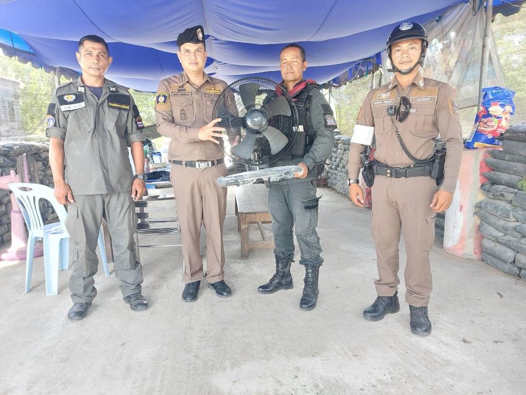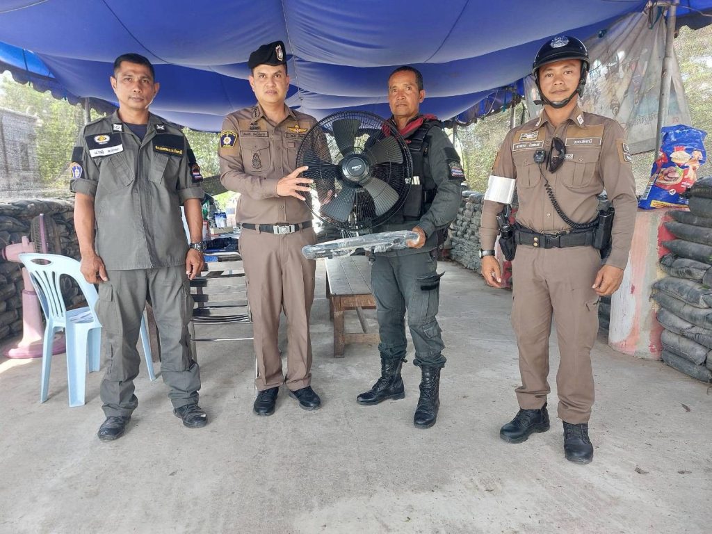 ผกก.มอบพัดลมเพื่อใช้คลายร้อนแก่ จนท.ตร.ที่ปฏิบัติหน้าที่จุดตรวจ