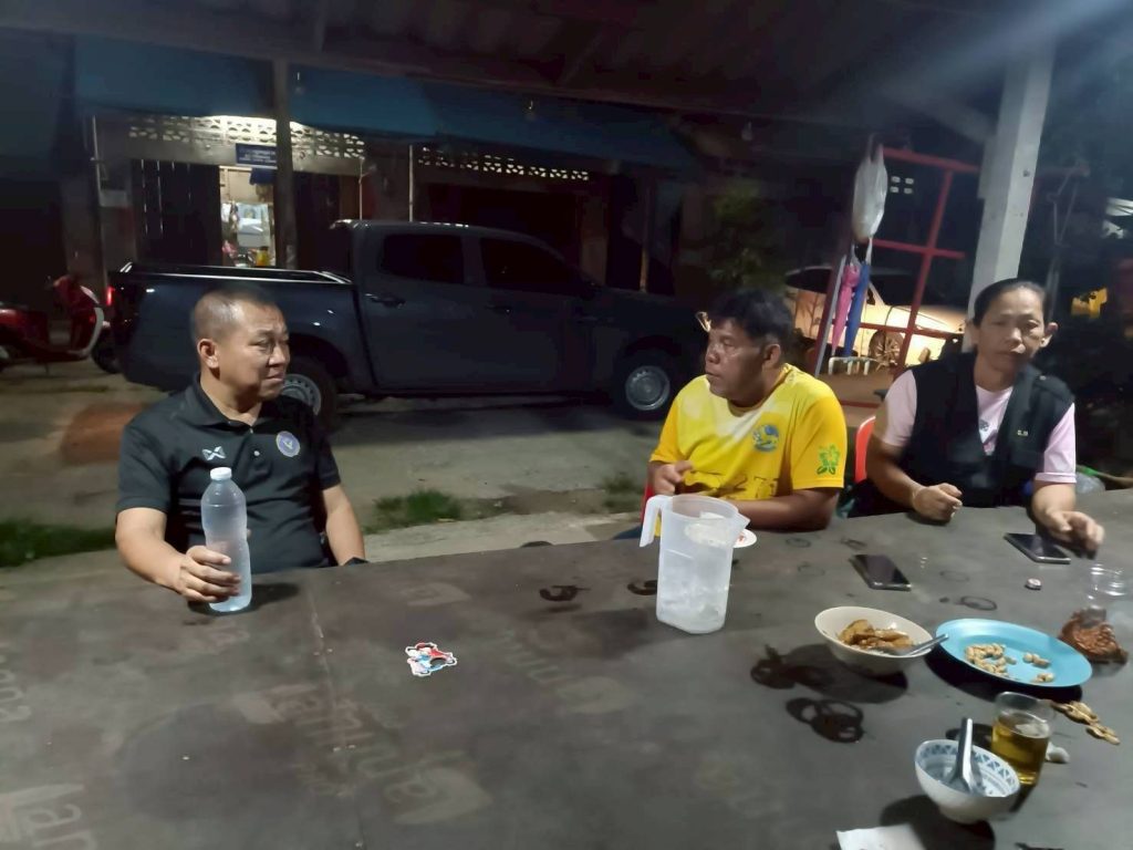 ตรวจเยี่ยม พบปะพูดคุย กับผู้นำชุมชน ผู้ใหญ่บ้าน สอบถามปัญหาในชุมชน แนะนำแนวทางป้องกันต่างๆ ณ ที่ทำการผู้ใหญ่บ้าน ม.5 บ้านคลองทราย ต.แม่ลาน จึงเรียนมาเพื่อโปรดทราบ