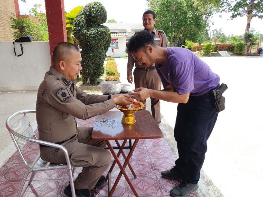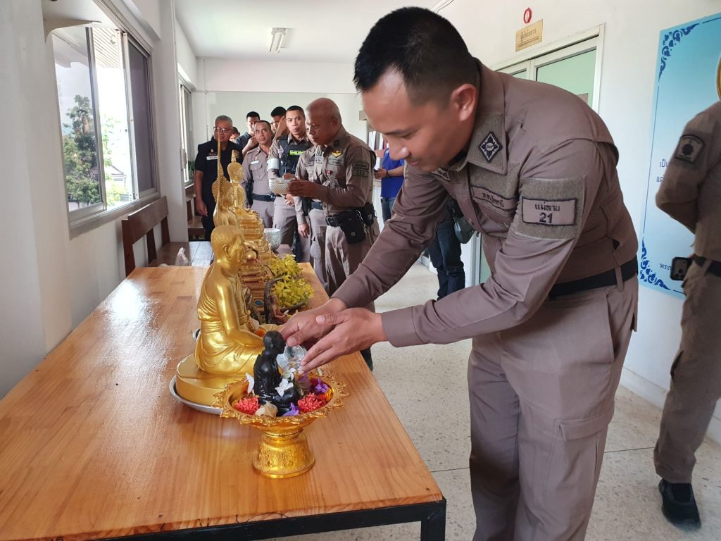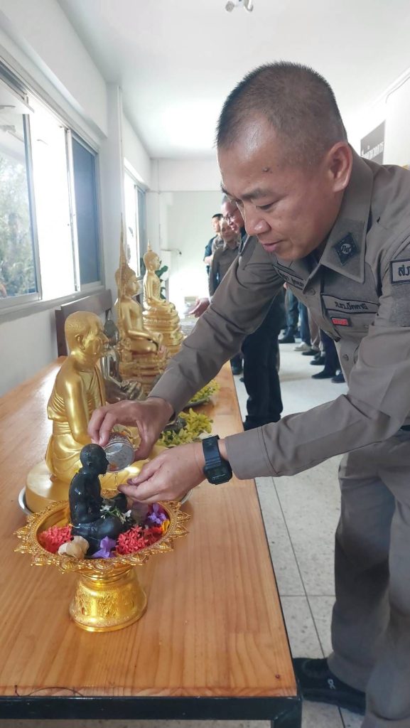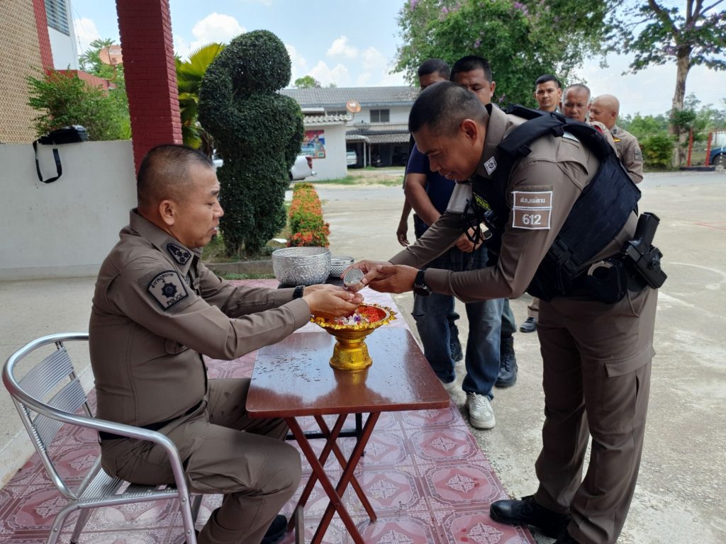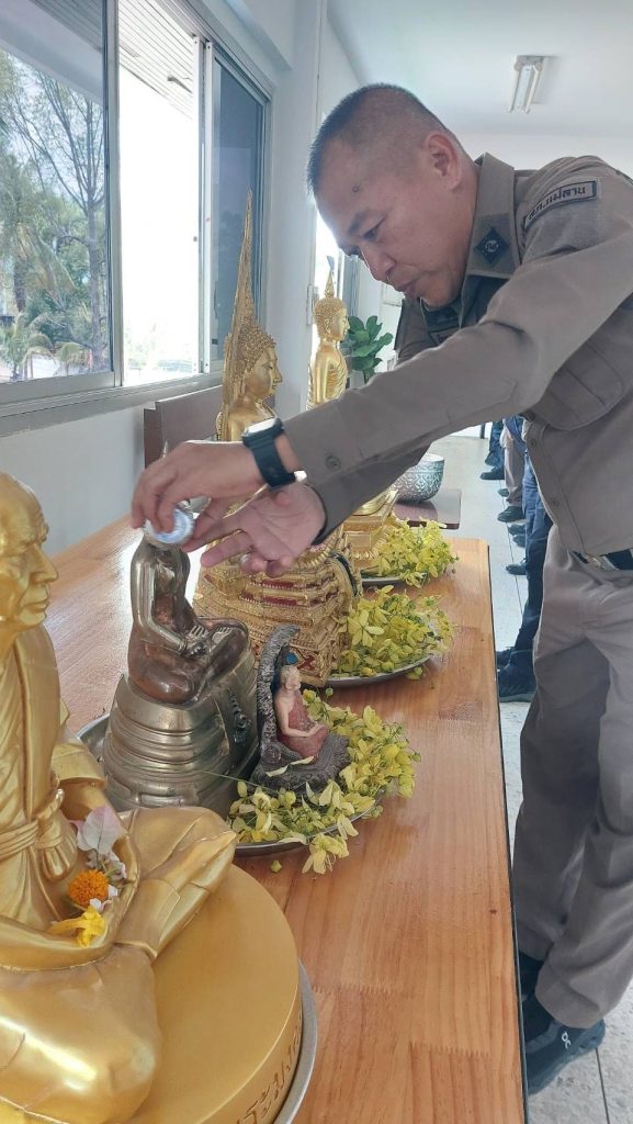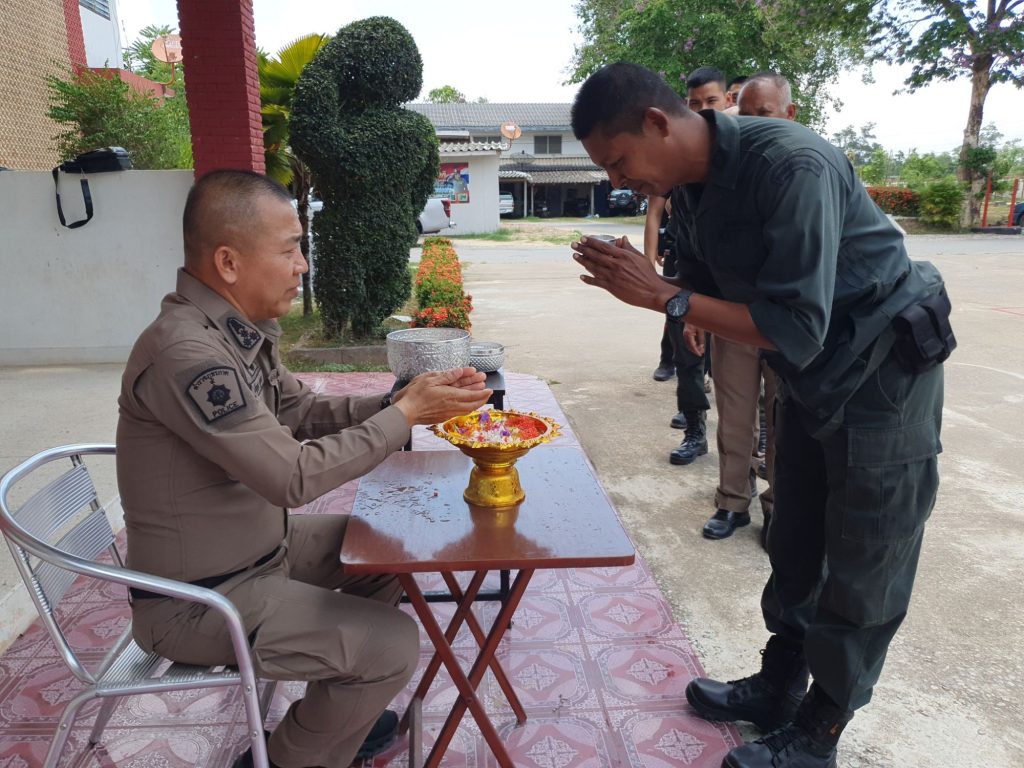 พร้อมข้าราชการตำรวจ สภ.แม่ลานที่นับถือศาสนาพุทธ ร่วมพิธีสรงน้ำพระพุทธรูป สรงน้ำศาลพระภูมิเจ้าที่ และรดน้ำดำหัวขอพร ผกก.สภ.แม่ลาน เนื่องในโอกาสวันสงกรานต์ เพื่อความเป็นสิริมงคลในชีวิตและหน้าที่การงาน จึงเรียนมาเพื่อโปรดทราบ