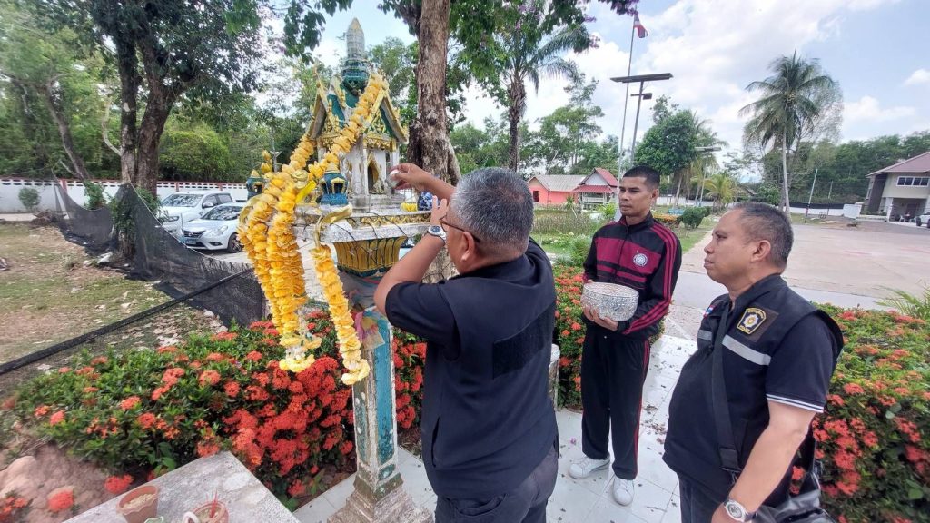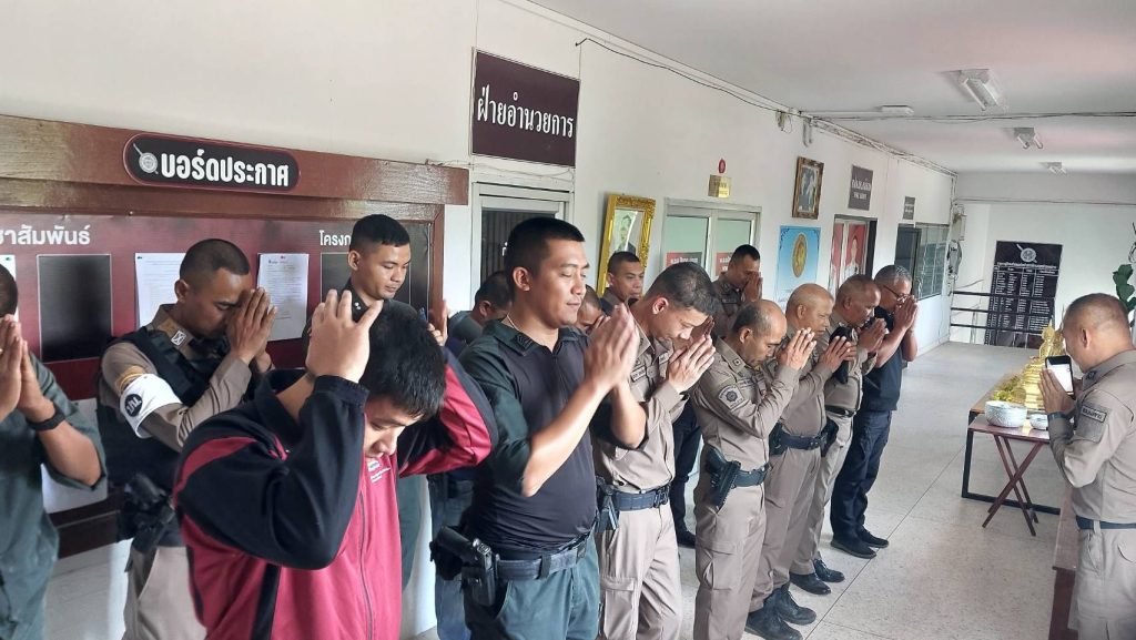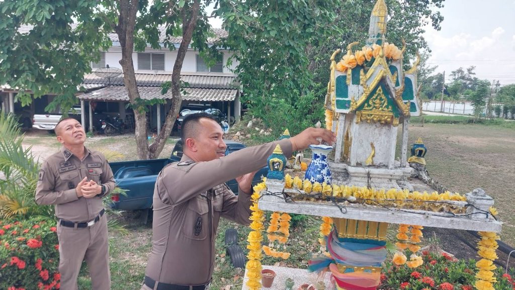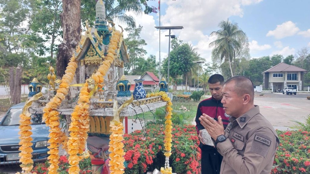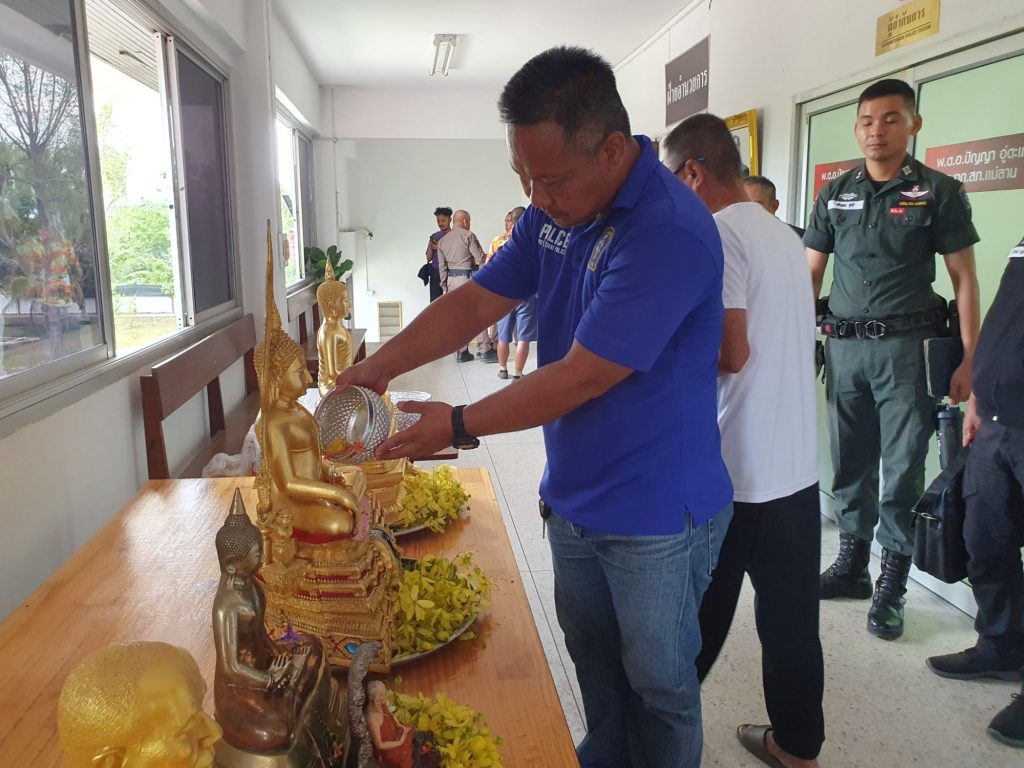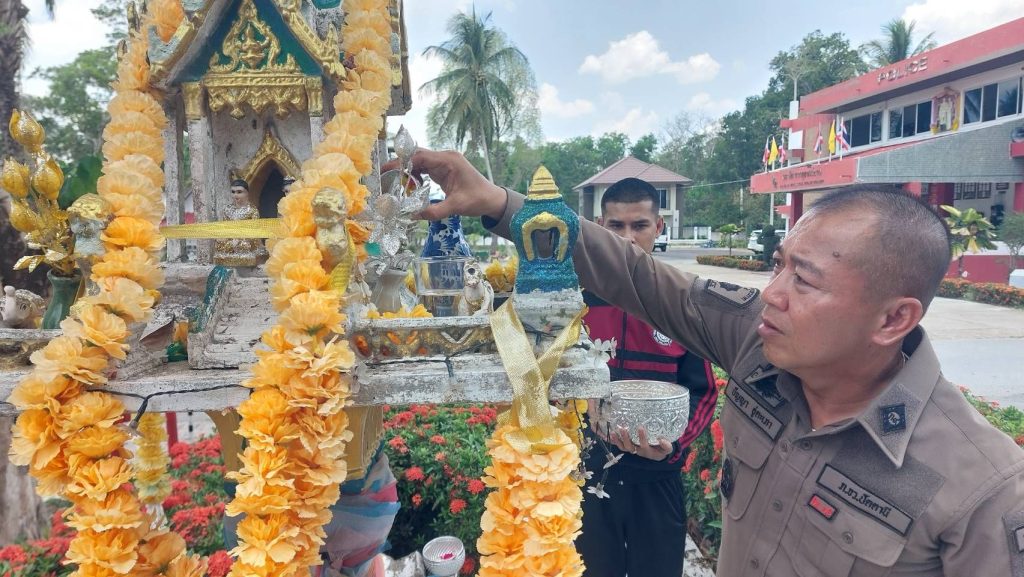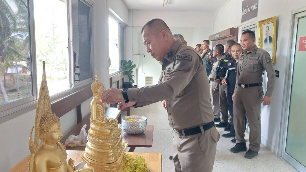 พร้อมข้าราชการตำรวจ สภ.แม่ลานที่นับถือศาสนาพุทธ ร่วมพิธีสรงน้ำพระพุทธรูป สรงน้ำศาลพระภูมิเจ้าที่ และรดน้ำดำหัวขอพร ผกก.สภ.แม่ลาน เนื่องในโอกาสวันสงกรานต์ เพื่อความเป็นสิริมงคลในชีวิตและหน้าที่การงาน จึงเรียนมาเพื่อโปรดทราบ