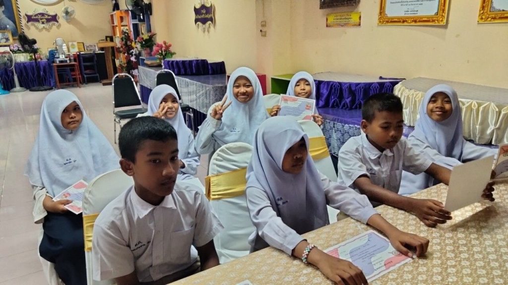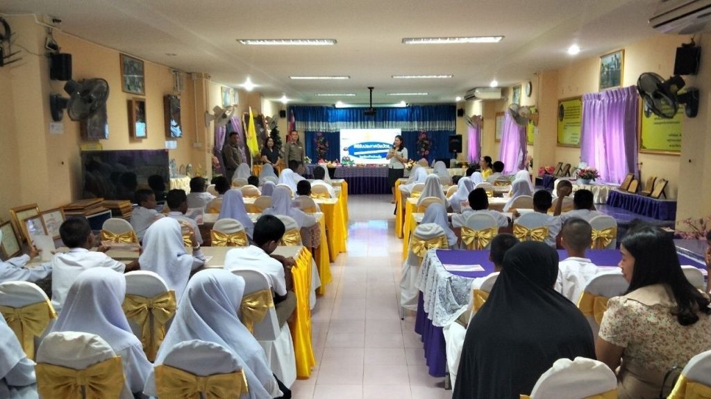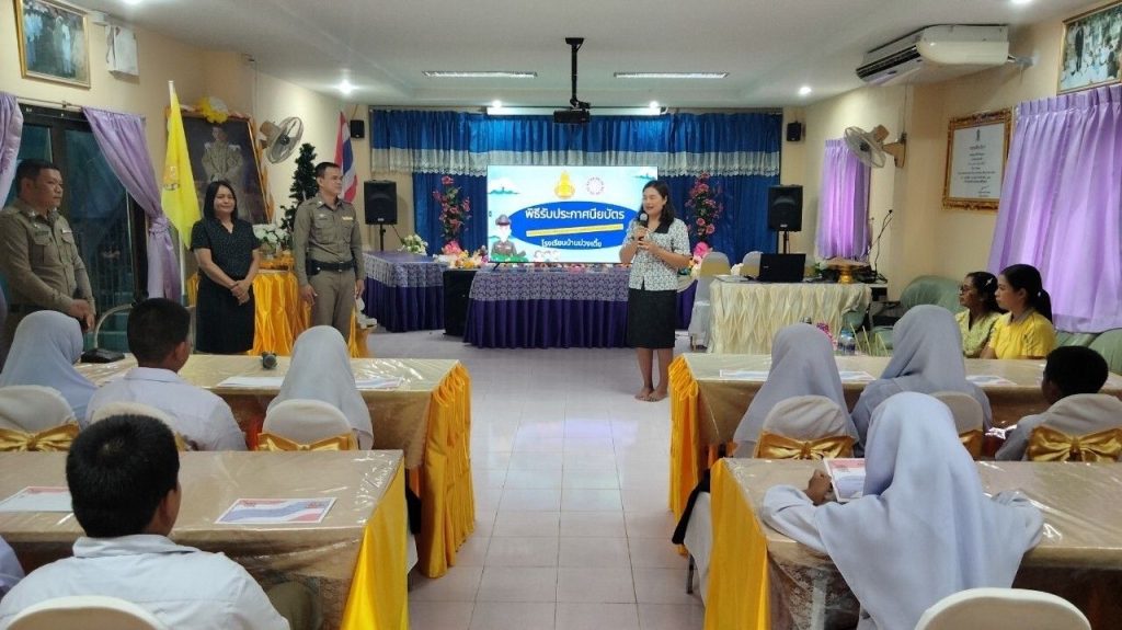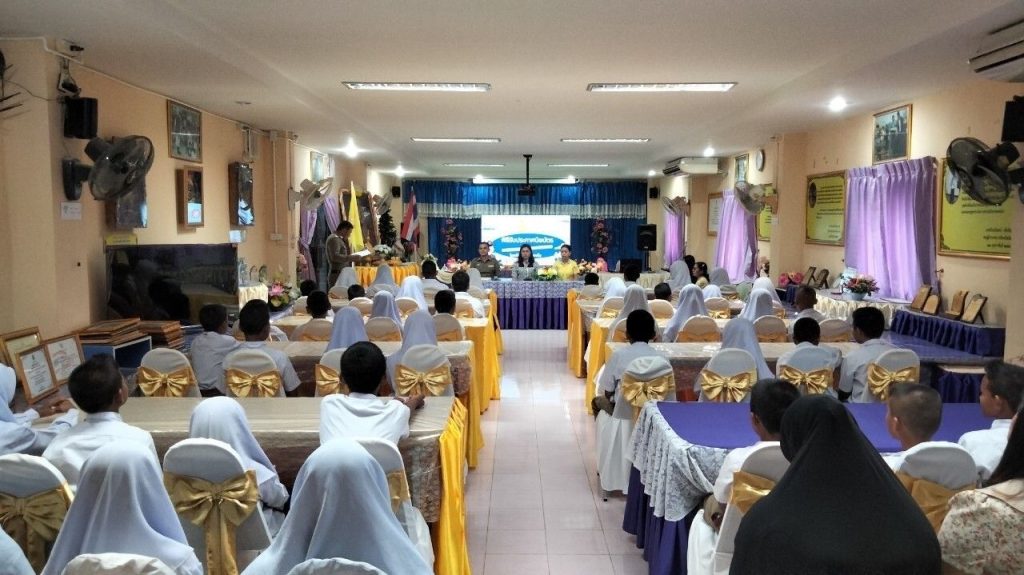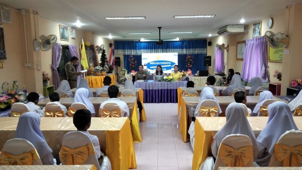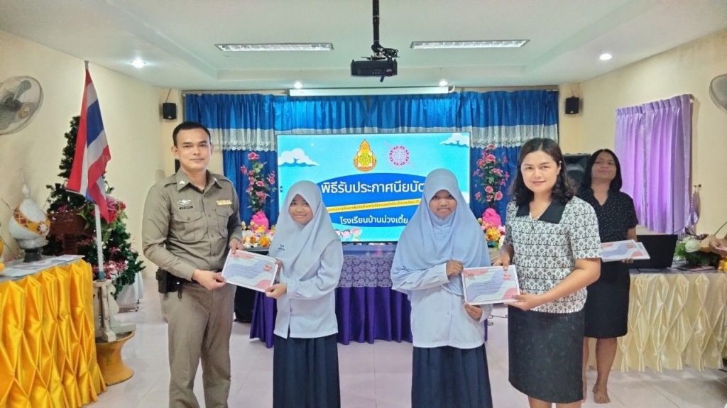 – มอบประกาศนียบัตรให้กับ นักเรียนที่จบหลักสูตรตามโครงการการศึกษาเพื่อการต่อต้านการใช้ยาเสพติดในเด็กนักเรียน ( โครงการแดร์ D.A.R.E.)ให้กับเด็กนักเรียน ชั้น ป.5/1 ป.5/2 โรงเรียนบ้านม่วงเตี้ย ม.4 ต.ม่วงเตี้ย อ.แม่ลาน จว.ปัตตานี
