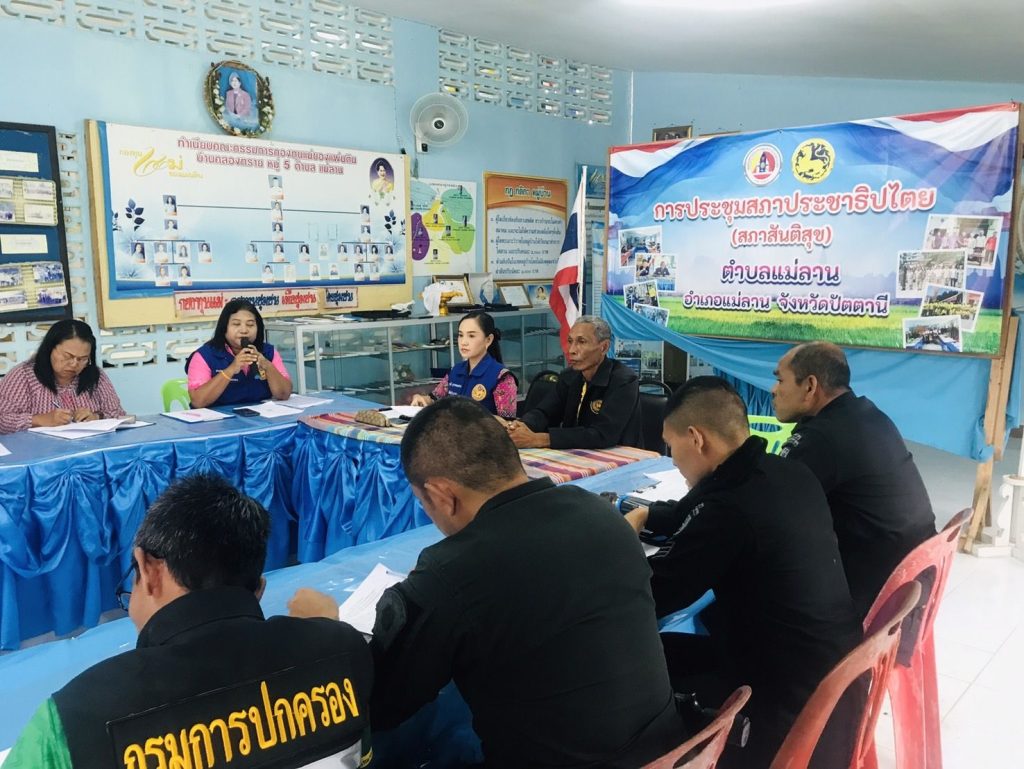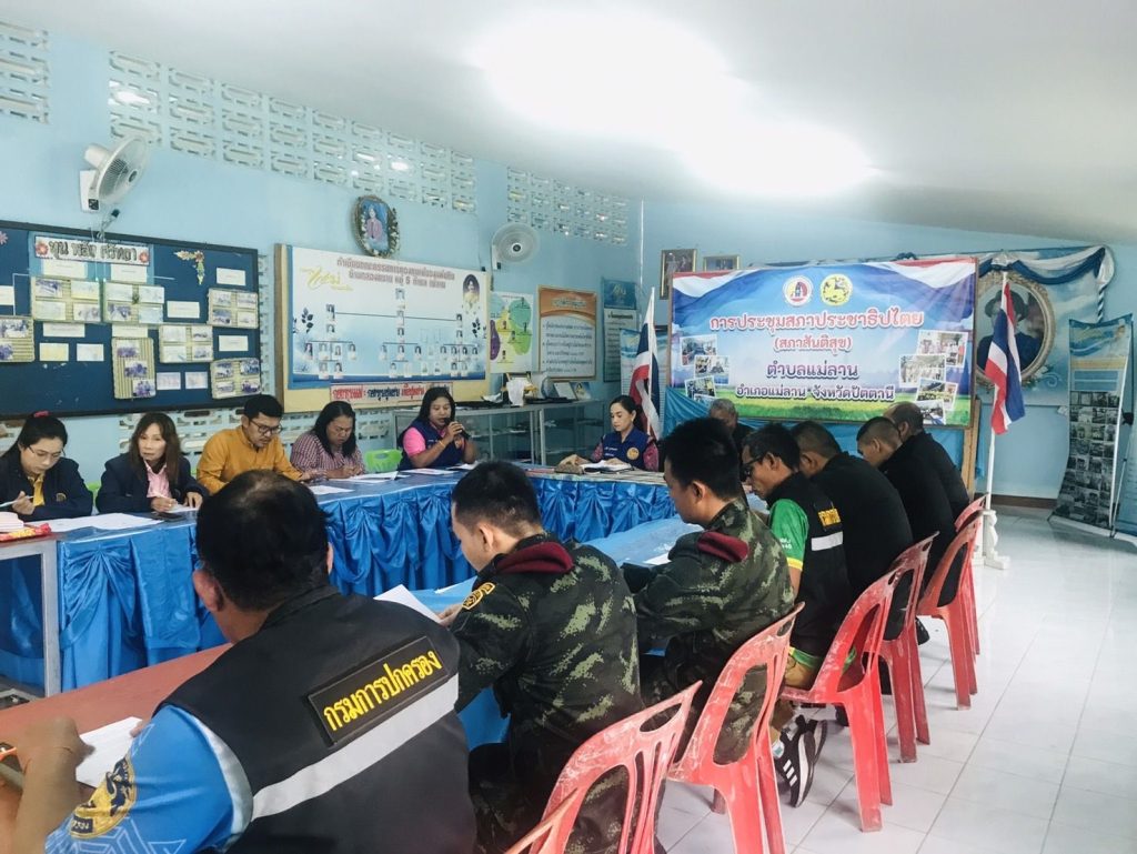 ว.4 ร่วมประชุมสภาสันติสุขตำบลแม่ลาน ณ อาคารอเนกประสงค์ ม.5 ต.แม่ลาน อ.แม่ลาน จ.ปัตตานี