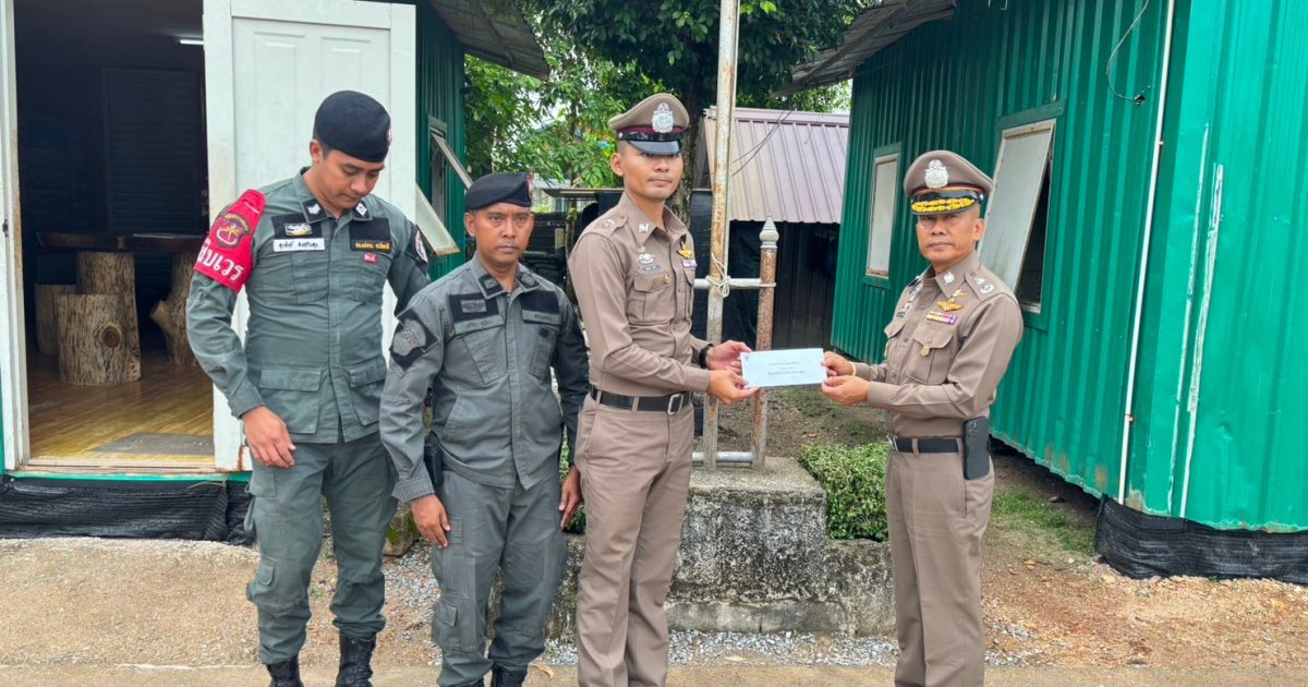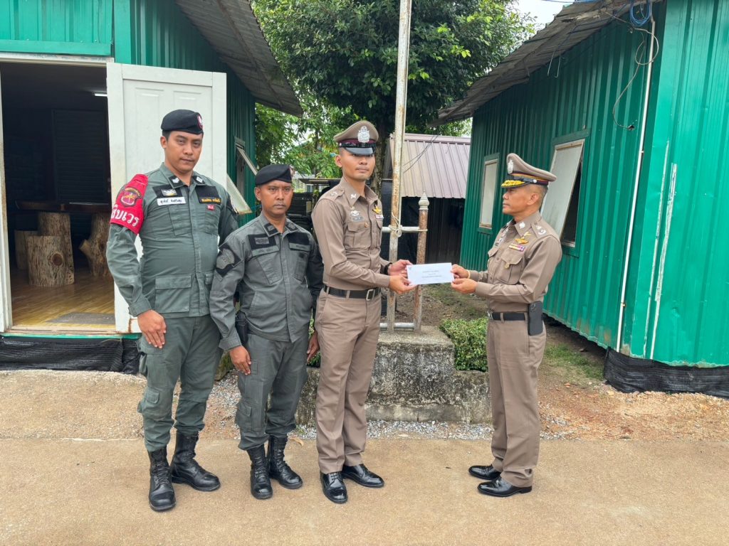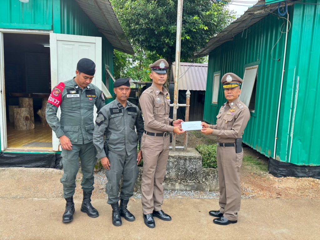 เวลา ๑๖.๑๕ น. พล.ต.ต.กฤษฎา แก้วจันดี รอง ผบช.ภ.๙/รอง ผบ.กกล.ตร.จชต. มอบเงินพัฒนาฐาน แก่มว.ฉก.นปพ.ปน.๒๒ เพื่อใช้ในการพัฒนาที่ตั้งฐานปฏิบัติการและเพื่อขวัญกำลังใจแก่กำลังพลในการปฏิบัติหน้าที่ พร้อมทั้งตรวจเยี่ยม กำลังพล มว.ฉก.นปพ.ปน.๒๒ ตามนโยบายของผู้บังคับบัญชา