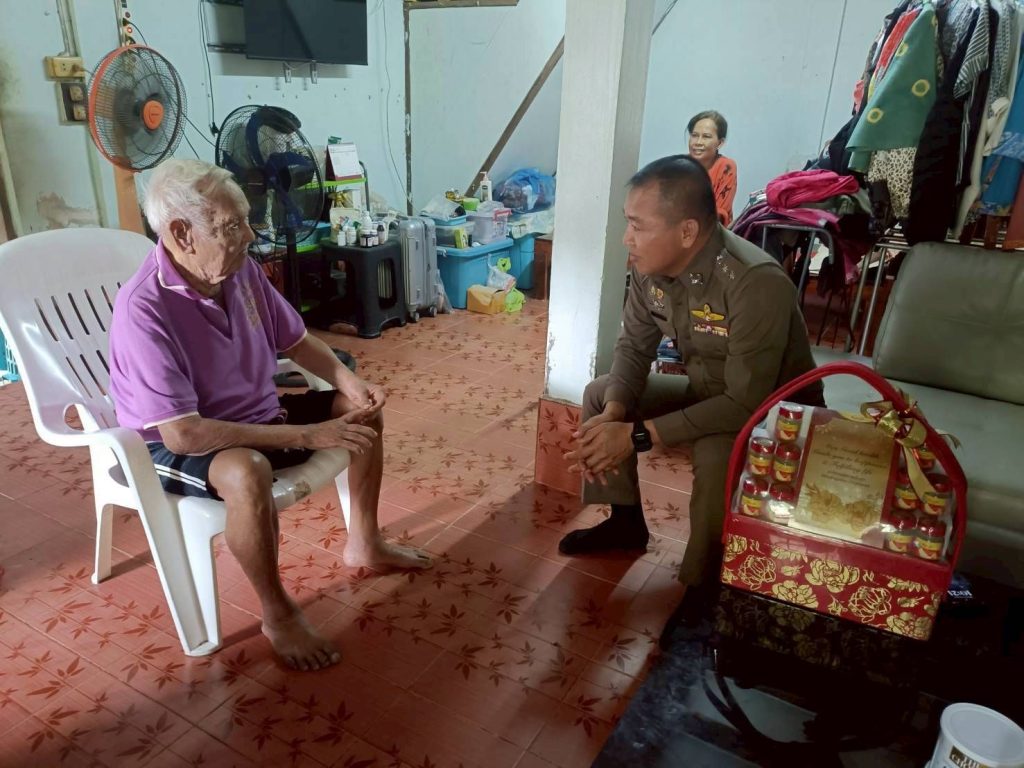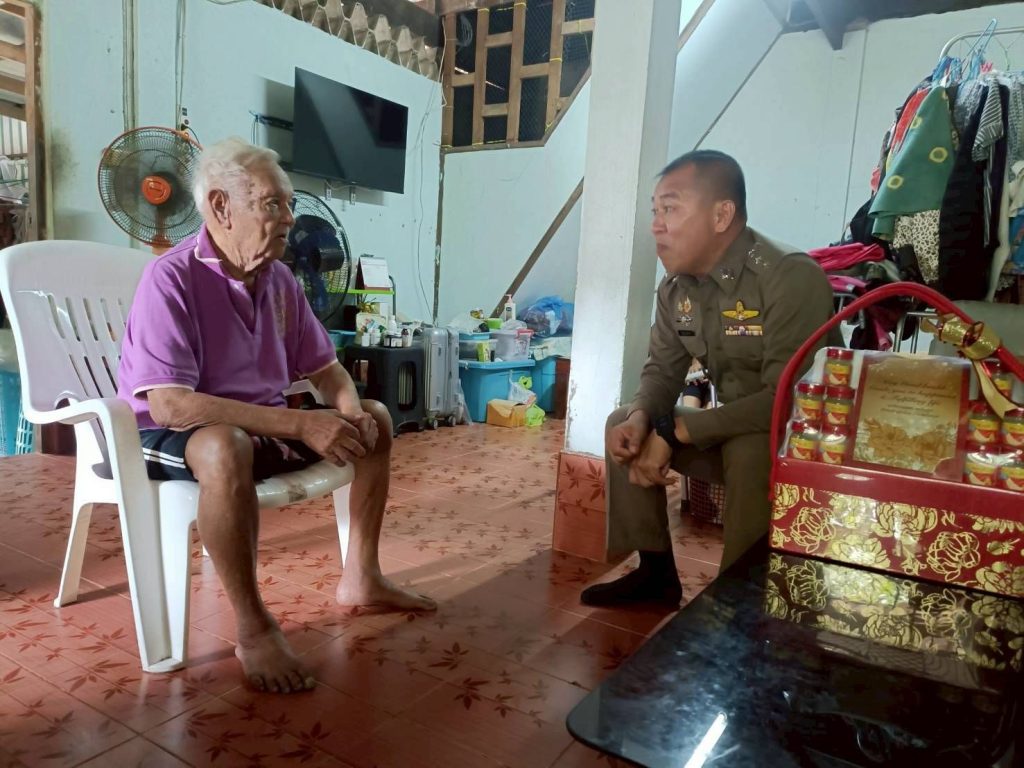 เยี่ยมเยือน พบปะพูดคุย กับอดีตหนัวหน้าสถานีตำรวจภูธรบ้านคลองทราย ด.ต.รื่น สุวรรณชาตรี พร้อมมอบกระเช้าให้ท่านเพื่อแสดงความนอบน้อมต่อผู้ใหญ่ ณ ต.แม่ลาน