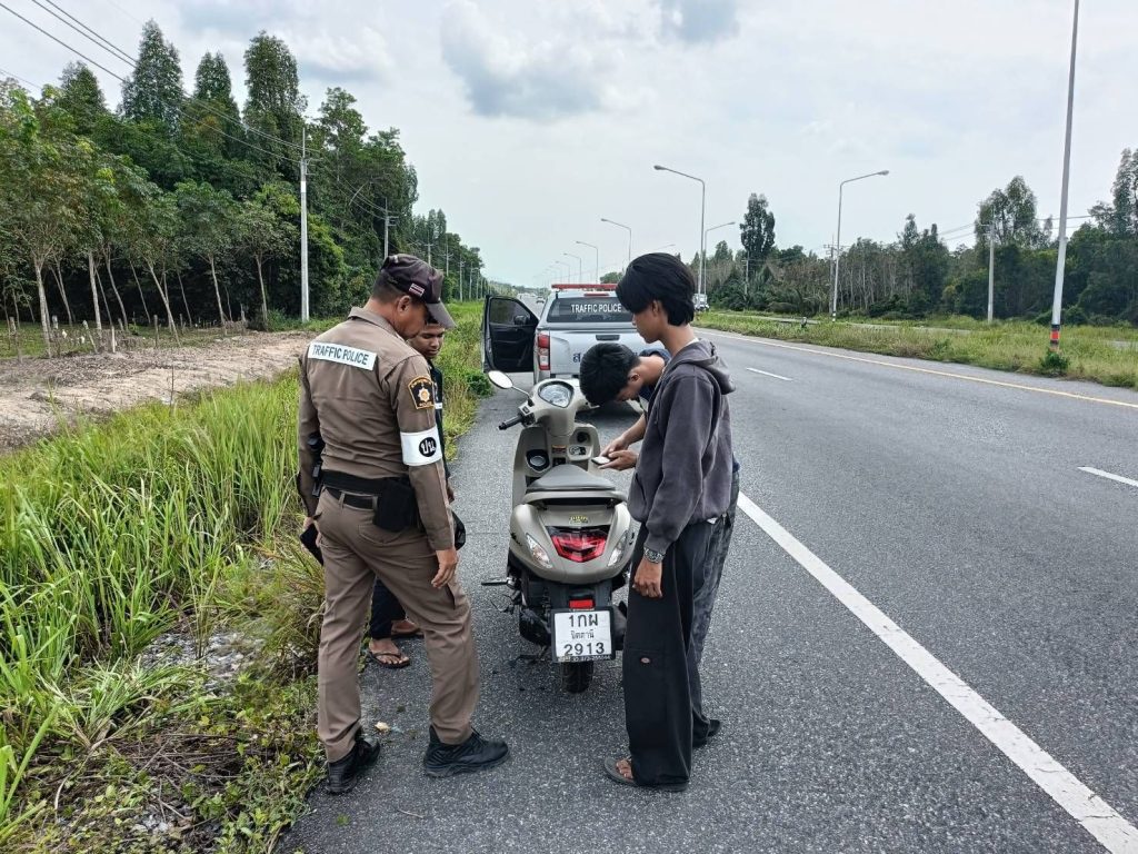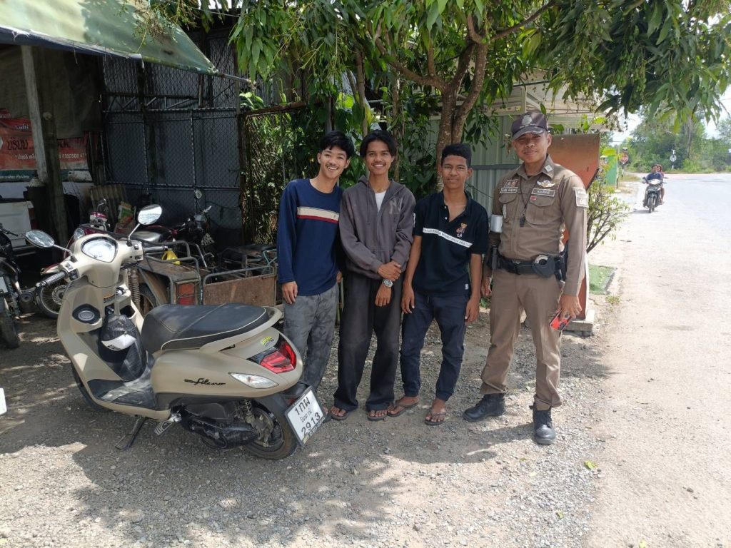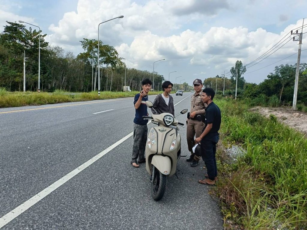 ร.ต.อ.ประเสริฐ ล่องสุวรรณ รอง สวป.ฯ/ ร้อยเวร 60 พร้อมด้วย ชป.จราจร ว.4 ให้ความช่วยเหลือรถจักรยานยนต์ประชาชนเสีย (สายพานขาด) บริเวณถนนสาย 418 ต.แม่ลาน