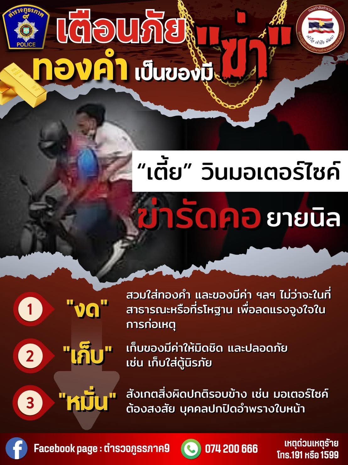 🚨เตือนภัย… ทองคำเป็นของมี “ฆ่า” เนื่องจากราคาทองคำปัจจุบันมีมูลค่าสูง 👮♂️ตำรวจภูธรภาค 9 ขอความร่วมม