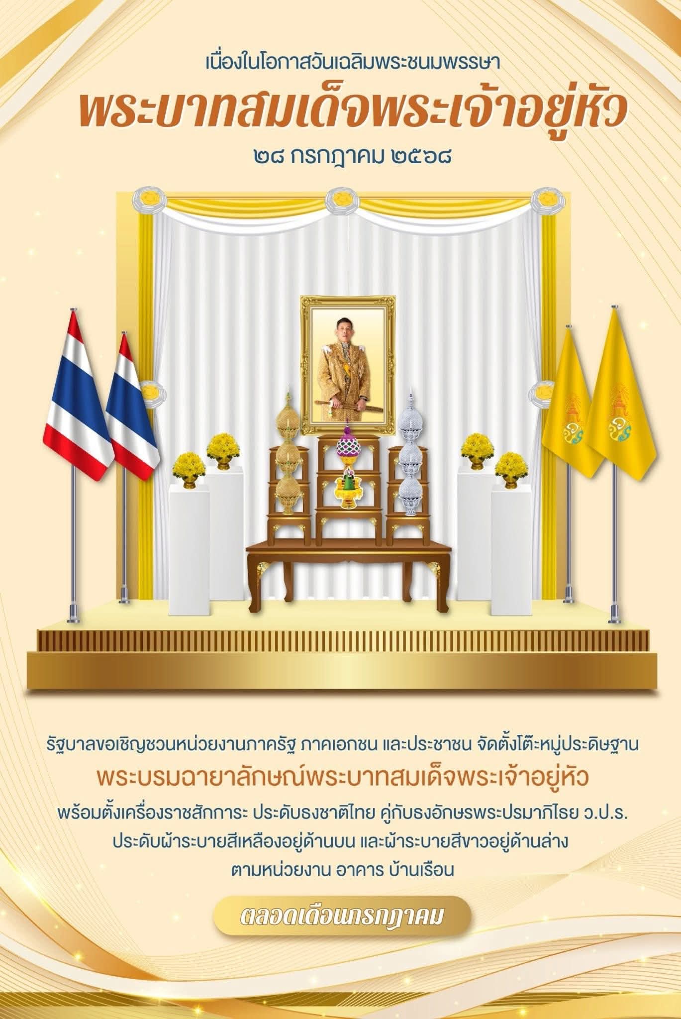 💛 เนื่องในโอกาสวันเฉลิมพระชนมพรรษาพระบาทสมเด็จพระเจ้าอยู่หัว ๒๘ กรกฎาคม ๒๕๖๘ รัฐบาลขอเชิญหน่วยงานภาค